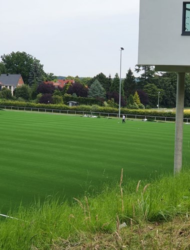 Renovation of Tangstedt’s football pitch consisted of installation of an artificial turf system with artificial turf, backing layer, shock absorbing pad, sand and 100% cork infill - Amorim Nature 130.