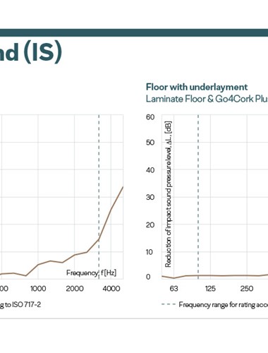 Similarly, Go4Cork Plus underlayment doubled the sound insulation of laminate flooring, delivering a 100% improvement in impact sound reduction.