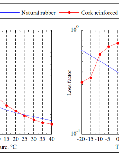 Ao passo que a cortiça tem um fator de perda superior ao da borracha - essencial para a função amortecedora e consequente dissipação de energia - as borrachas anti vibração são isolantes e oferecem muito pouco amortecimento. A combinação destes dois materiais num compósito de cortiça com borracha apresenta característi…