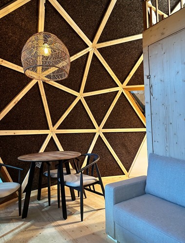 O material Amorim MNL051 destaca-se pela sua leveza, capacidade de isolamento térmico e acústico e acabamento de alta qualidade. Para além disso, a sua textura natural proporciona uma sensação agradável ao toque, tornando-o ideal para um espaço destinado ao lazer.