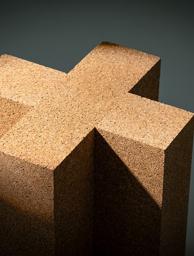 O CORK CROSS parte de um princípio simples: duas peças idênticas, com 10 cm de espessura, que se encaixam entre si de forma intuitiva. Dispensa parafusos, colas ou qualquer sistema de união adicional. A montagem é direta e o resultado é estruturalmente sólido e surpreendentemente leve. A sua geometria e a textura natur…